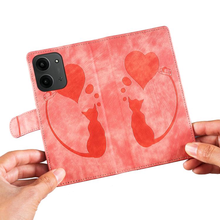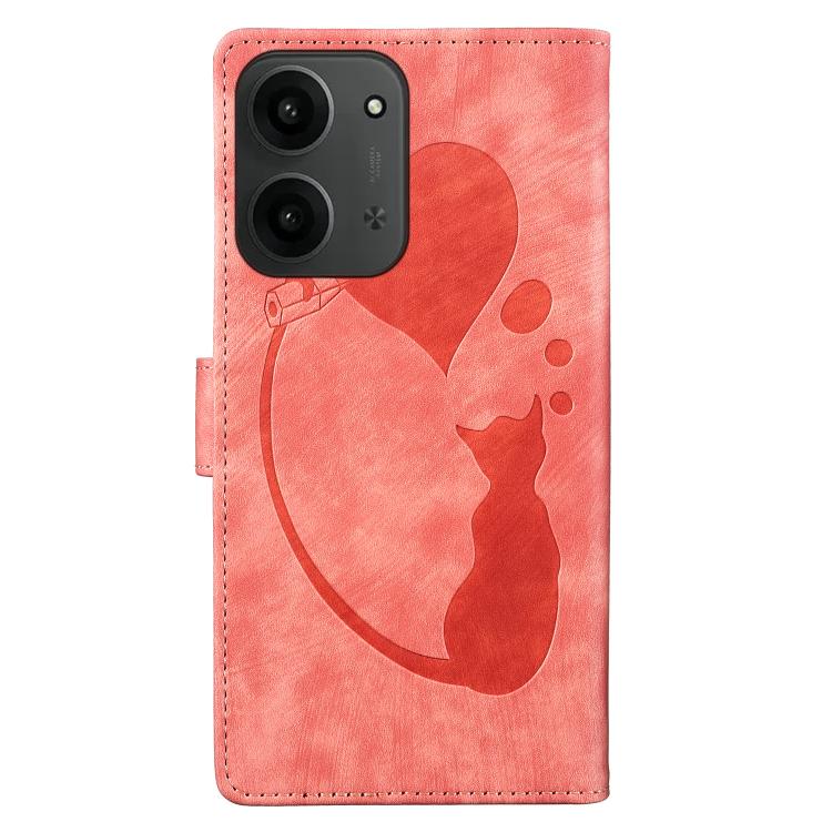 For Redmi 15C 5G / 4G EU 173mm Pen Heart Cat Embossed Leather Phone Case(Orange)