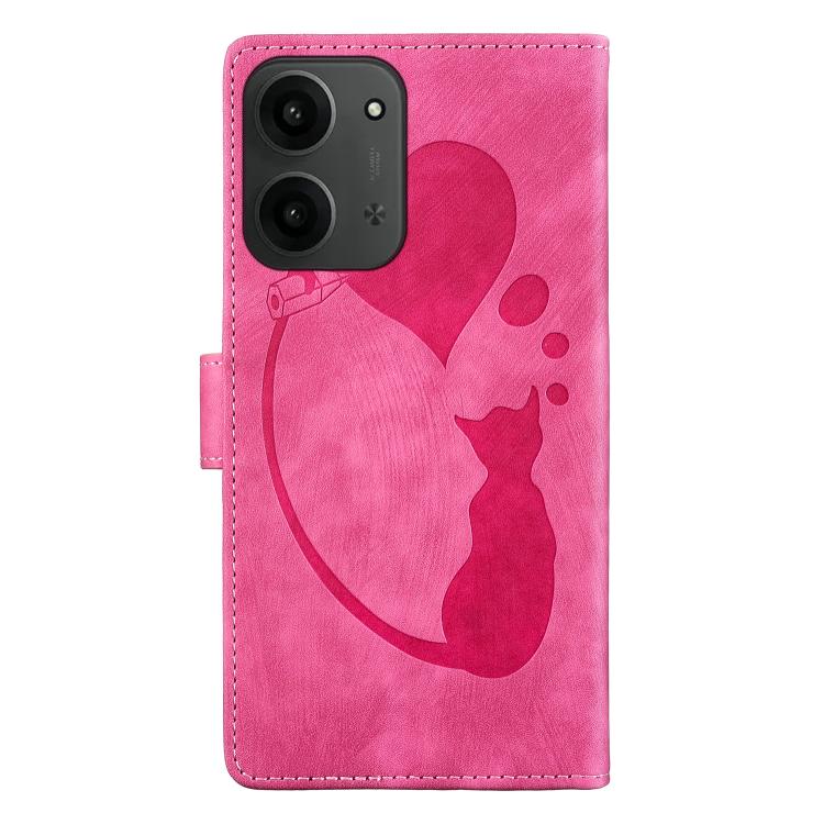 For Redmi 15C 5G / 4G EU 173mm Pen Heart Cat Embossed Leather Phone Case(Pink)