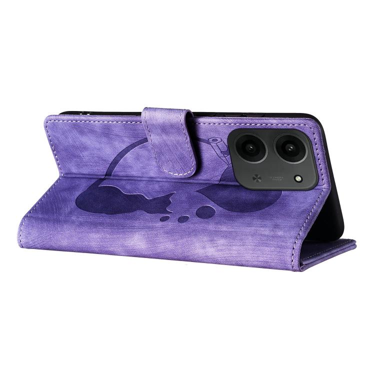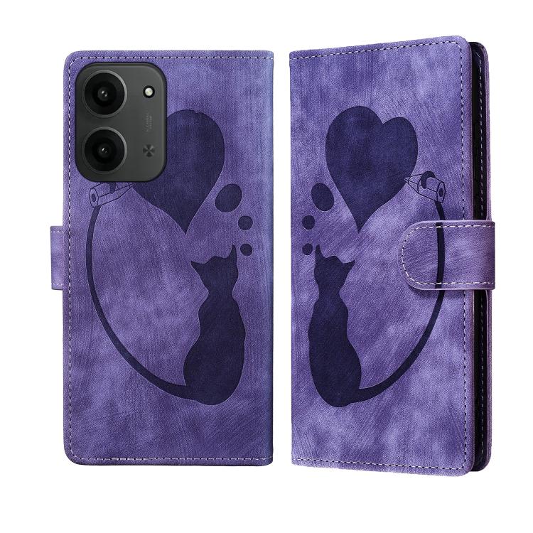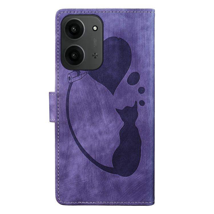 For Redmi 15C 5G / 4G EU 173mm Pen Heart Cat Embossed Leather Phone Case(Purple)
