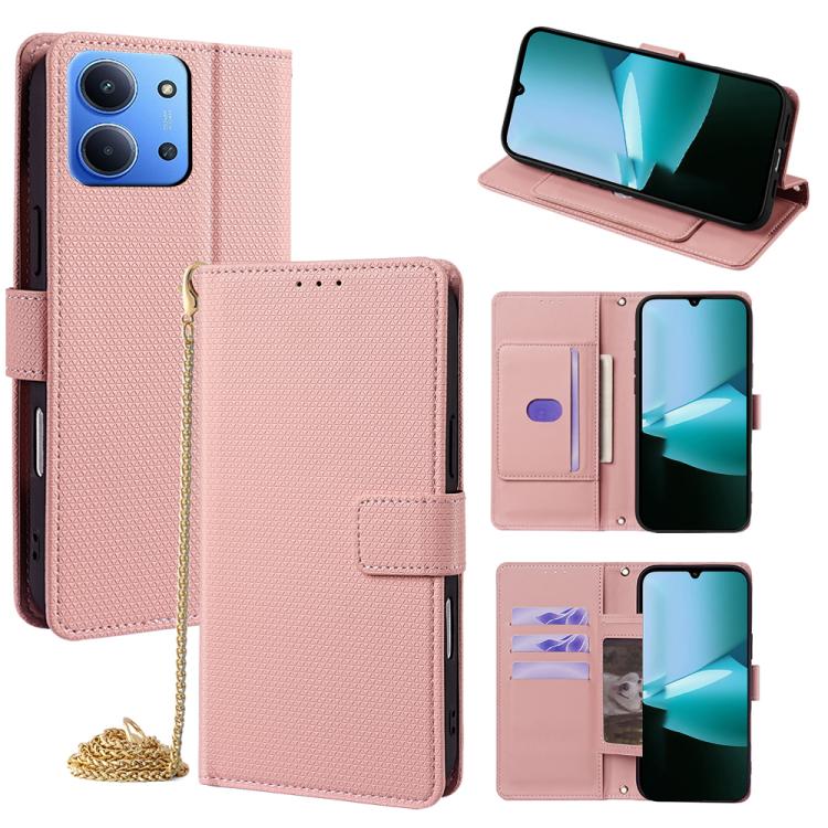 For Redmi 15C 5G / 4G EU 173mm / Poco C85 5G Crossbody Chain Triangle Leather Phone Case(Pink)