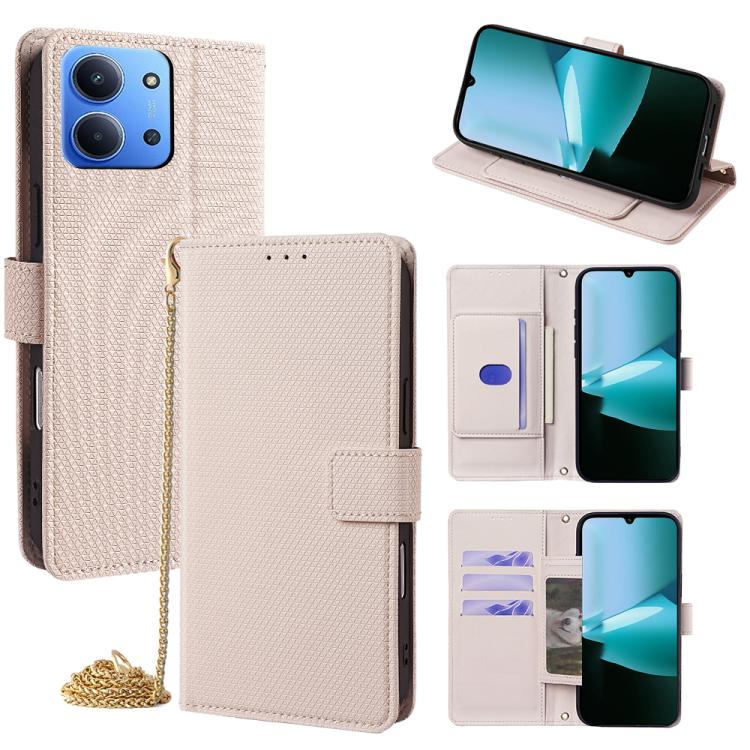 For Redmi 15C 5G / 4G EU 173mm / Poco C85 5G Crossbody Chain Triangle Leather Phone Case(White)