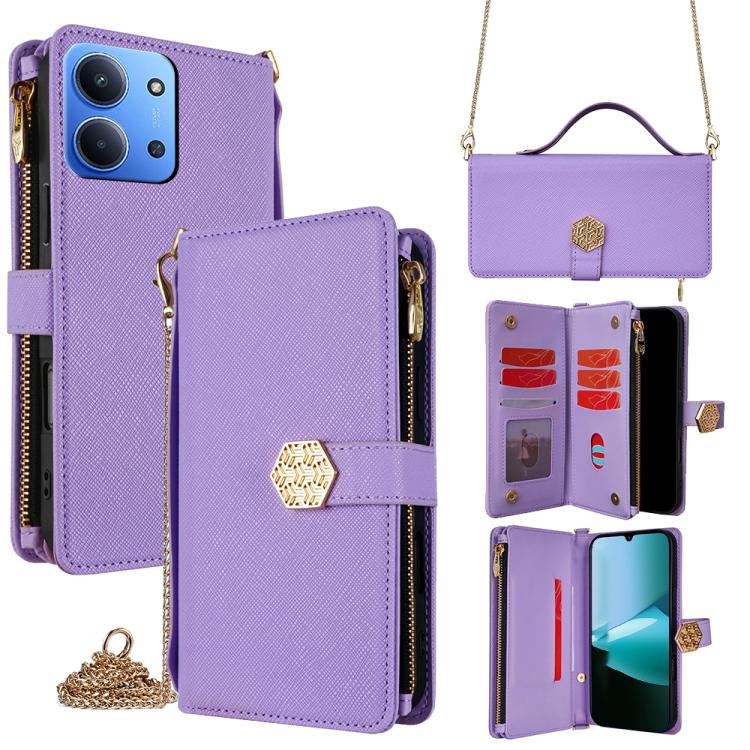 For Redmi 15C 5G / 4G EU 173mm / Poco C85 5G Crossbody Handle Cross Texture Leather Phone Case(Purple)