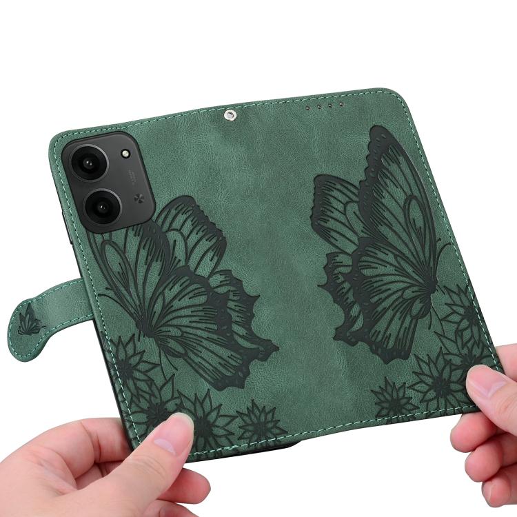 For Redmi 15C 5G / 4G EU 173mm Retro Skin Feel Butterflies Embossing Horizontal Flip Leather Phone Case(Green)