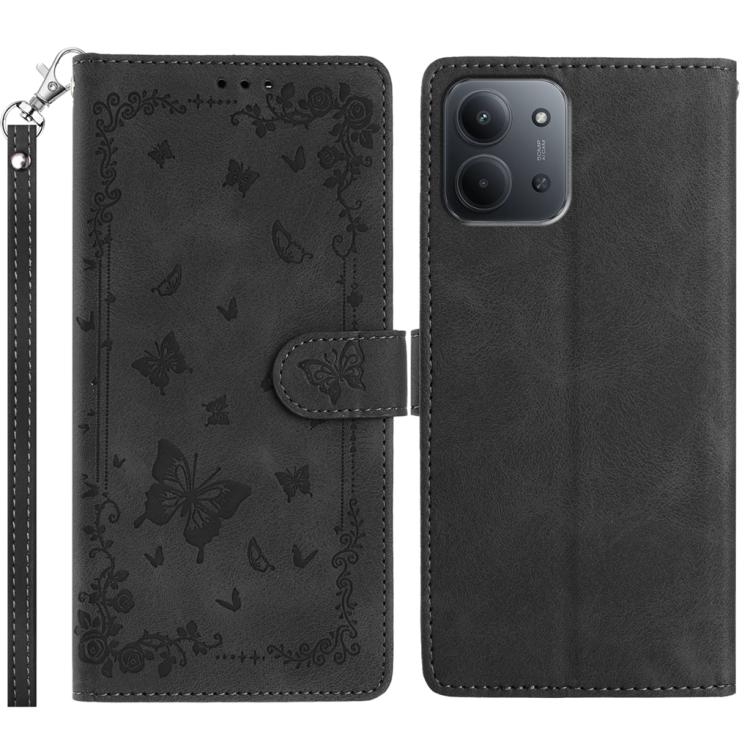 For Redmi 15C 5G / 4G EU 173mm Secret Garden Butterfly Pattern Leather Phone Case(Black)