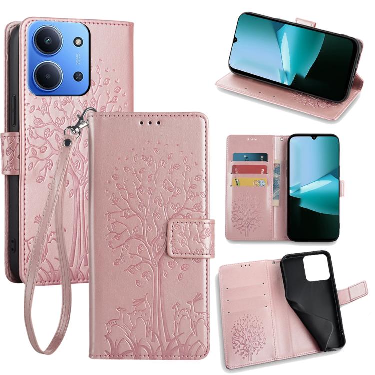 For Redmi 15C 5G / 4G EU 173mm Tree & Deer Embossed Leather Phone Case(Rose Gold)