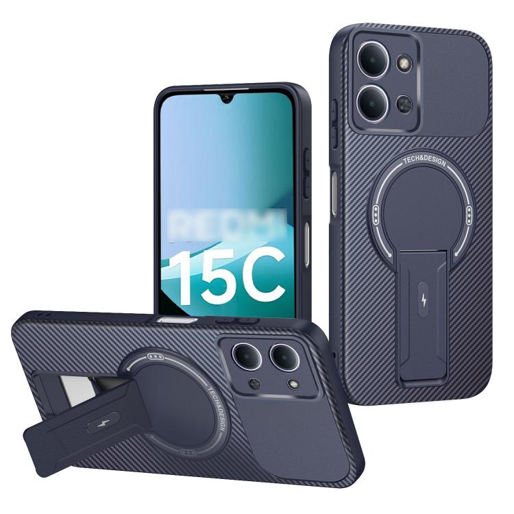 For Redmi 15C 5G / 4G Global 171mm Carbon Fiber Texture MagSafe Phone Case with Holder(Blue)