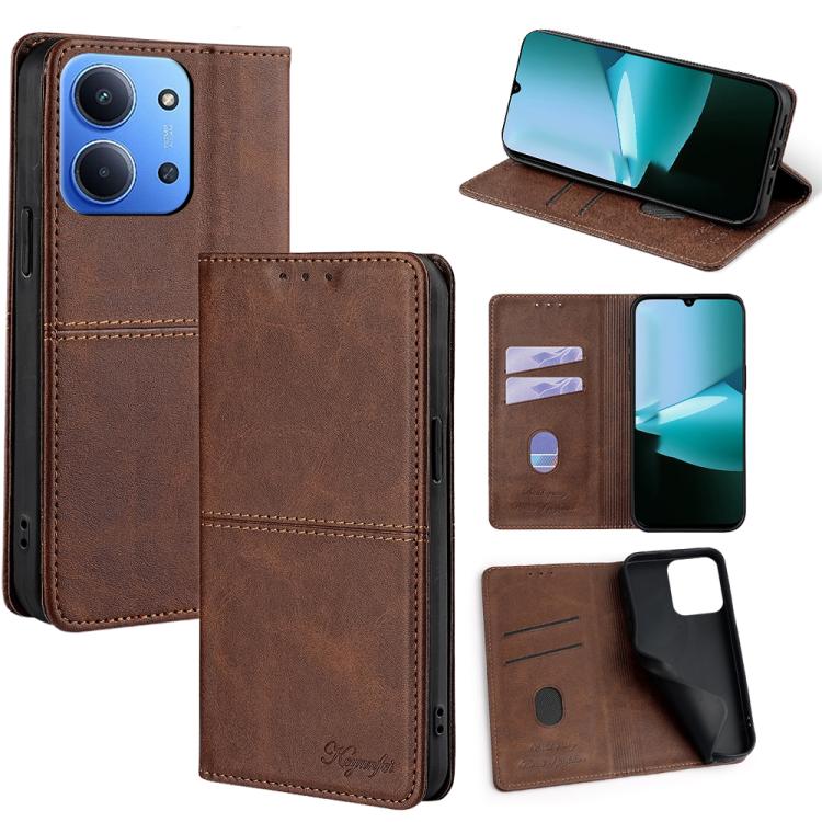 For Redmi 15C 5G / 4G Global 171mm / Poco C85 4G Cow Texture Magnetic Leather Phone Case(Dark Brown)