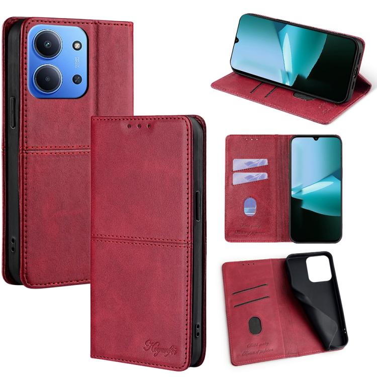 For Redmi 15C 5G / 4G Global 171mm / Poco C85 4G Cow Texture Magnetic Leather Phone Case(Red)