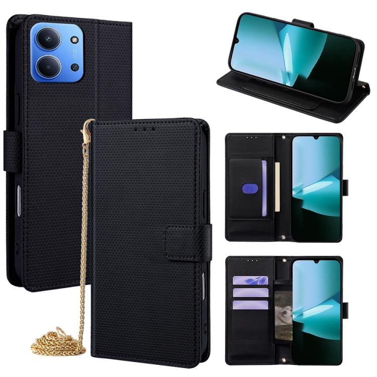 For Redmi 15C 5G / 4G Global 171mm / Poco C85 4G Crossbody Chain Triangle Leather Phone Case(Black)