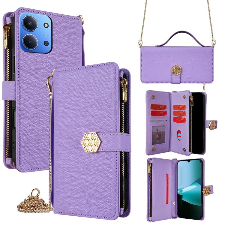 For Redmi 15C 5G / 4G Global 171mm / Poco C85 4G Crossbody Handle Cross Texture Leather Phone Case(Purple)