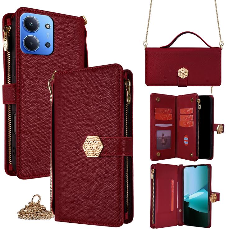 For Redmi 15C 5G / 4G Global 171mm / Poco C85 4G Crossbody Handle Cross Texture Leather Phone Case(Red)