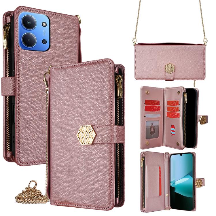 For Redmi 15C 5G / 4G Global 171mm / Poco C85 4G Crossbody Handle Cross Texture Leather Phone Case(Rose Gold)