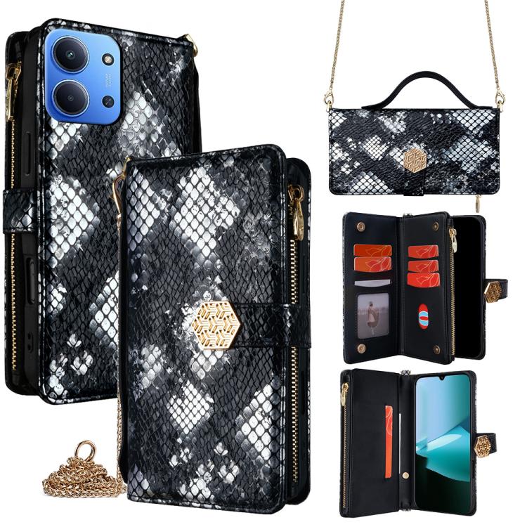 For Redmi 15C 5G / 4G Global 171mm / Poco C85 4G Crossbody Handle Snake Texture Leather Phone Case(Black)