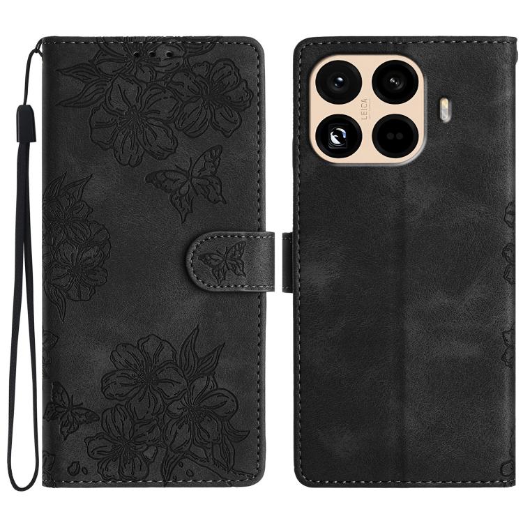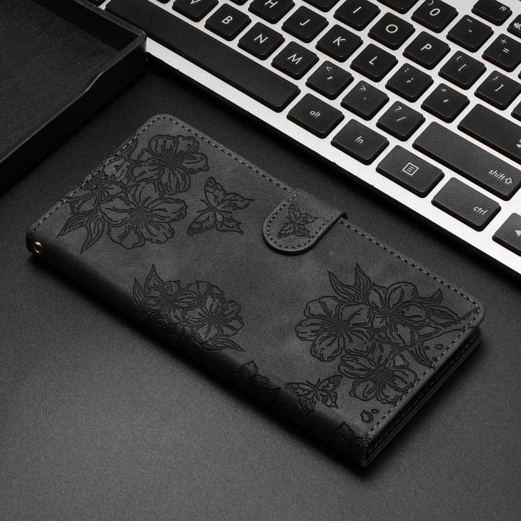 For Redmi 15T Pro 5G Cherry Blossom Butterfly Skin Feel Embossed PU Phone Case(Black)