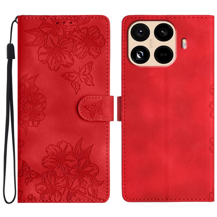 For Redmi 15T Pro 5G Cherry Blossom Butterfly Skin Feel Embossed PU Phone Case(Red)