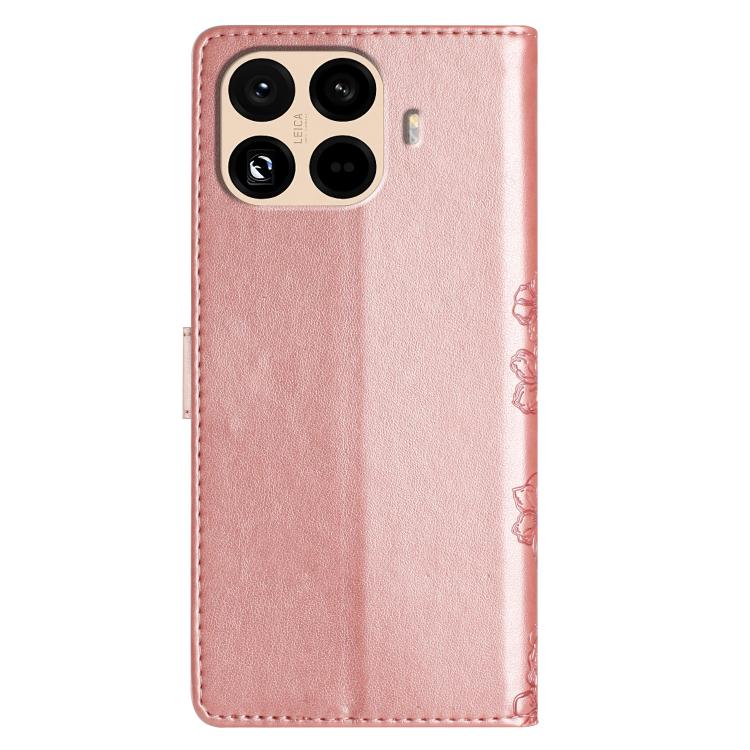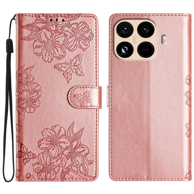 For Redmi 15T Pro 5G Cherry Blossom Butterfly Skin Feel Embossed PU Phone Case(Rose Gold)