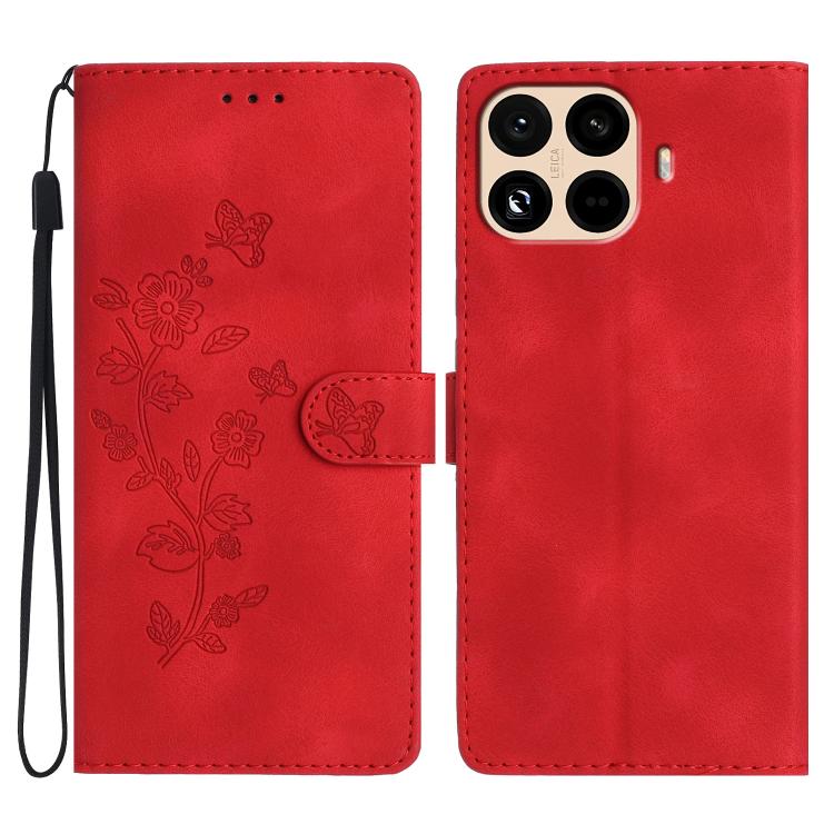 For Redmi 15T Pro 5G Flower Butterfly Embossing Pattern Leather Phone Case(Red)
