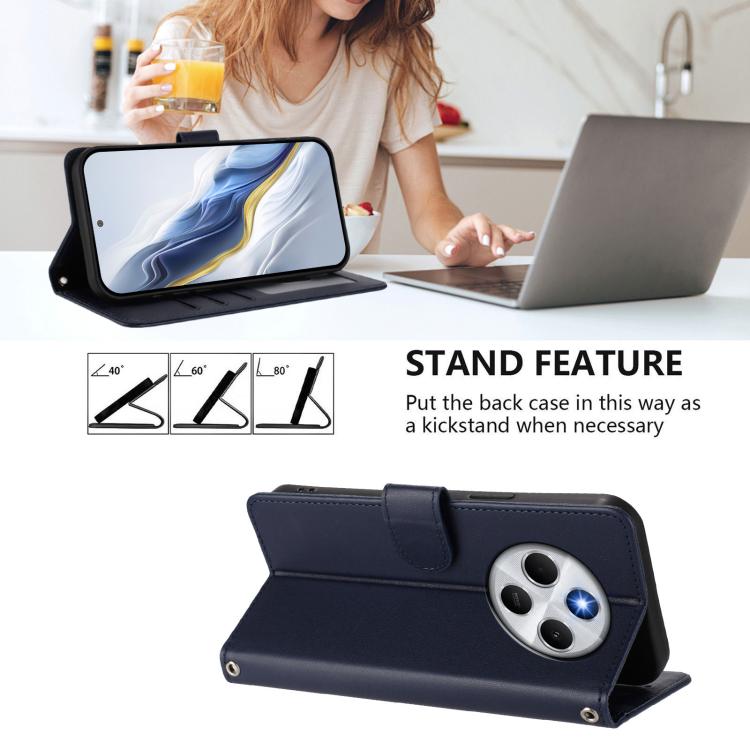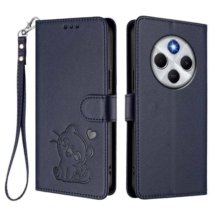 For Redmi A4 5G / A3 Pro / 14C 4G / 14R Embossed Heart Cat Leather Phone Case with Hand Strap(Blue)