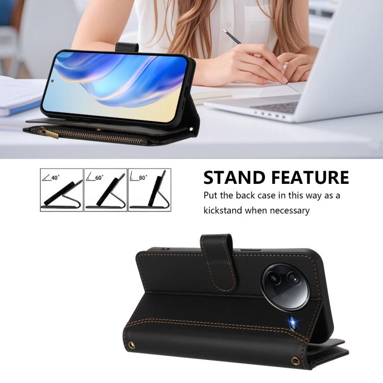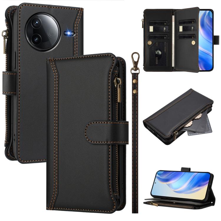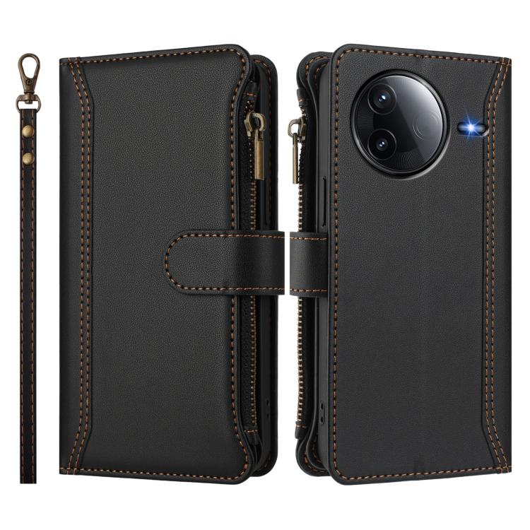 For Redmi K80 / K80 Pro Magnetic Closure 9 Card Slots Zipper Leather Case with Hand Strap(Black)