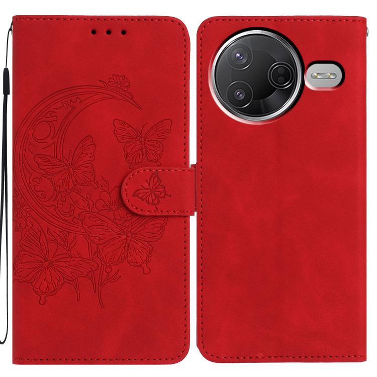 For Redmi K80 / K80 Pro Moonlit Butterfly Dance Pattern Embossed Leather Phone Case(Red)