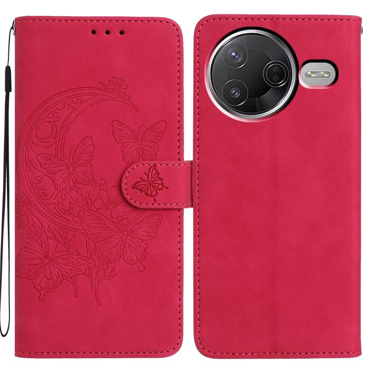 For Redmi K80 / K80 Pro Moonlit Butterfly Dance Pattern Embossed Leather Phone Case(Rose Red)