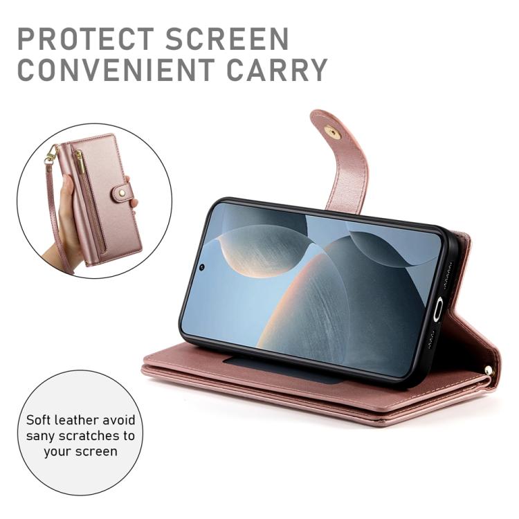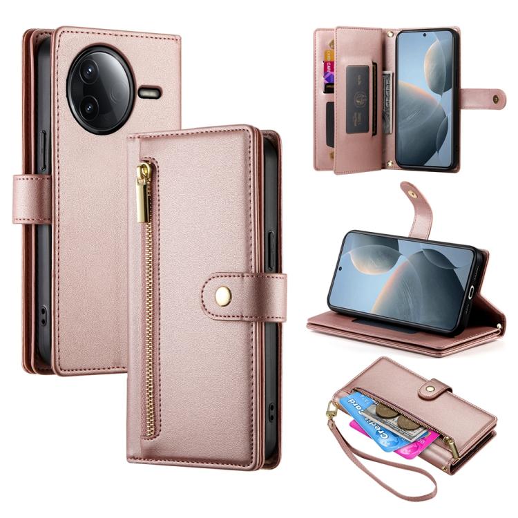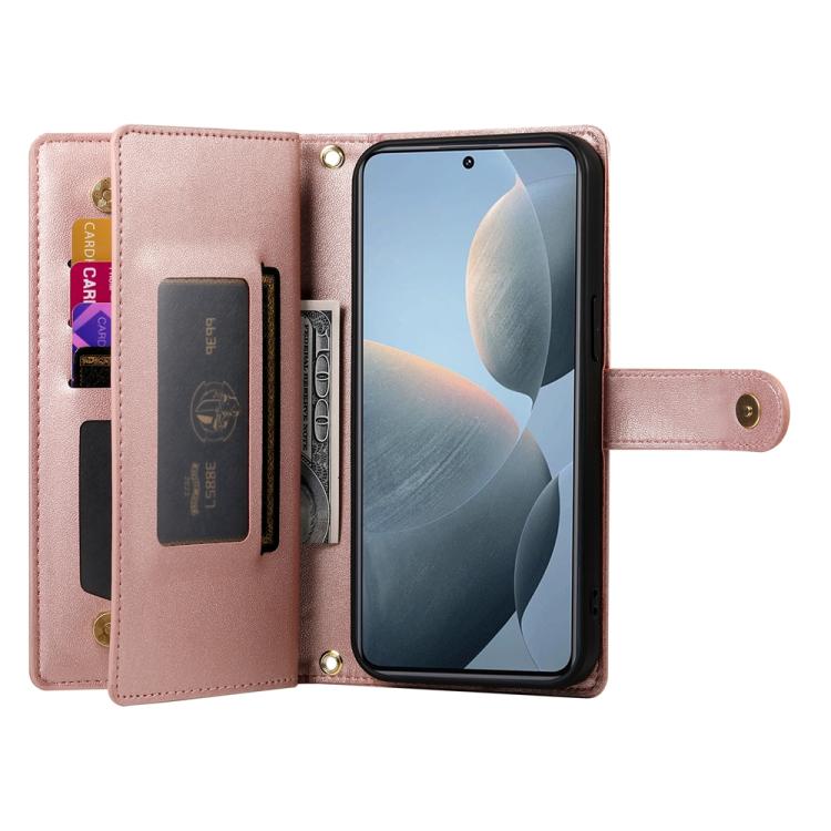 For Redmi K80 / K80 Pro Nine Card-slot Zipper Wallet Bag Leather Phone Case(Pink)
