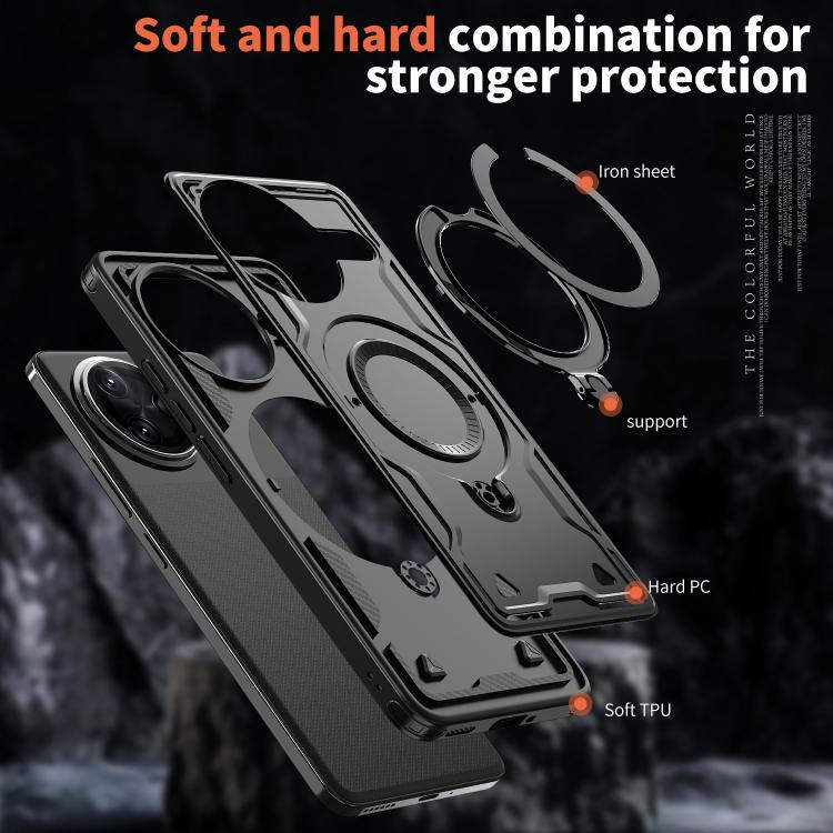 For Redmi K80 / K80 Pro PC Hybrid TPU Armor MagSafe Ring Holder Phone Case(Black)