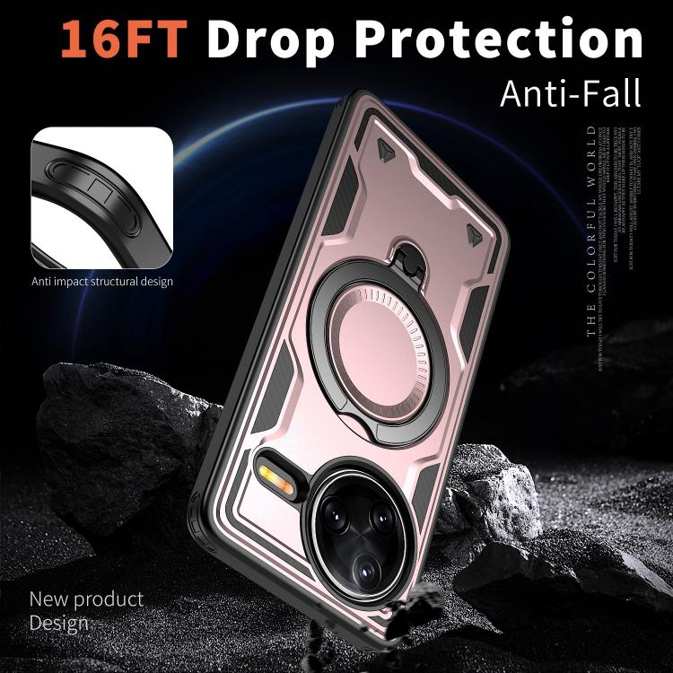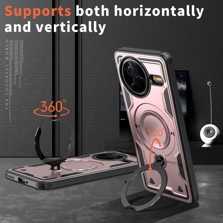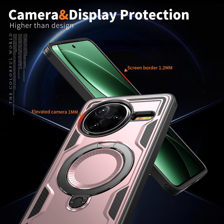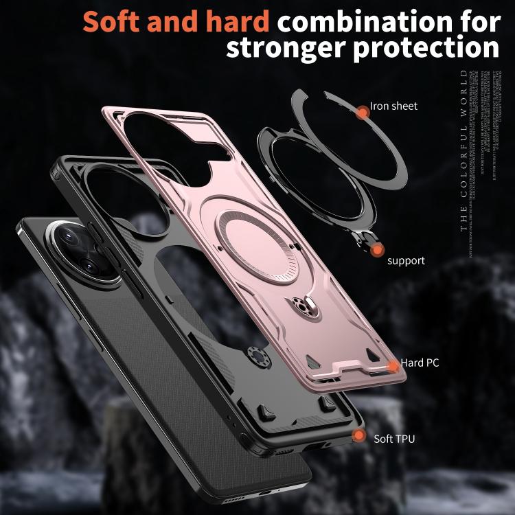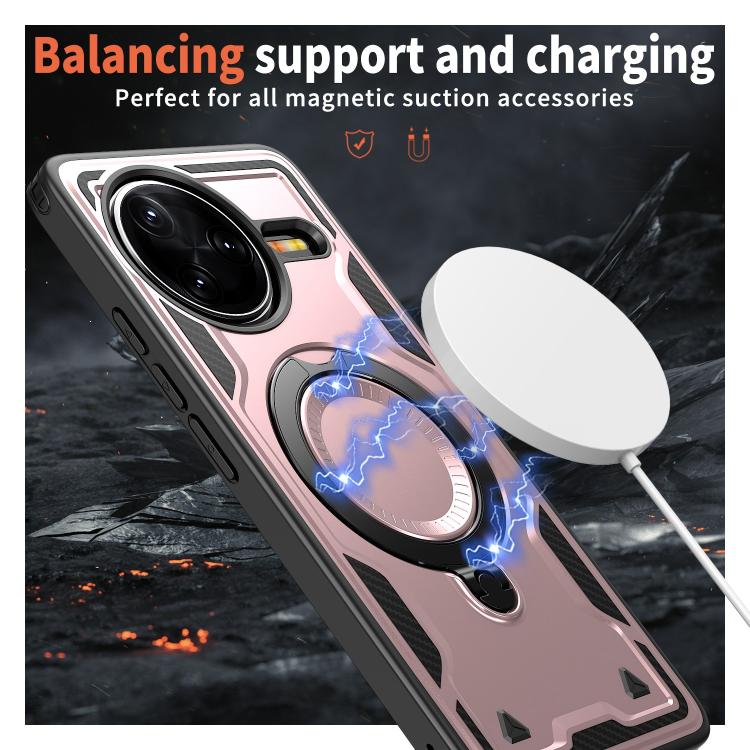 For Redmi K80 / K80 Pro PC Hybrid TPU Armor MagSafe Ring Holder Phone Case(Rose Gold)