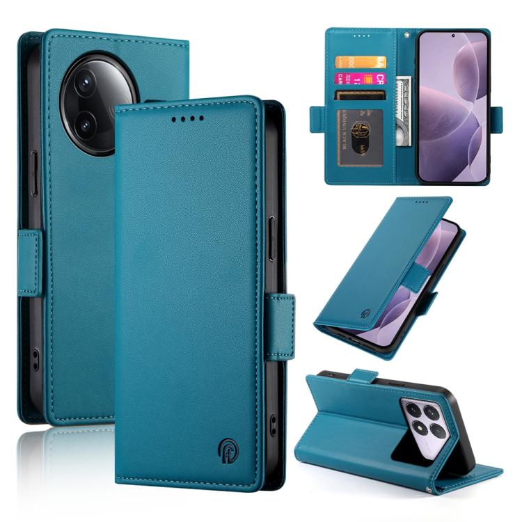For Redmi K80 / K80 Pro Side Buckle Magnetic Frosted Leather Phone Case(Blue)