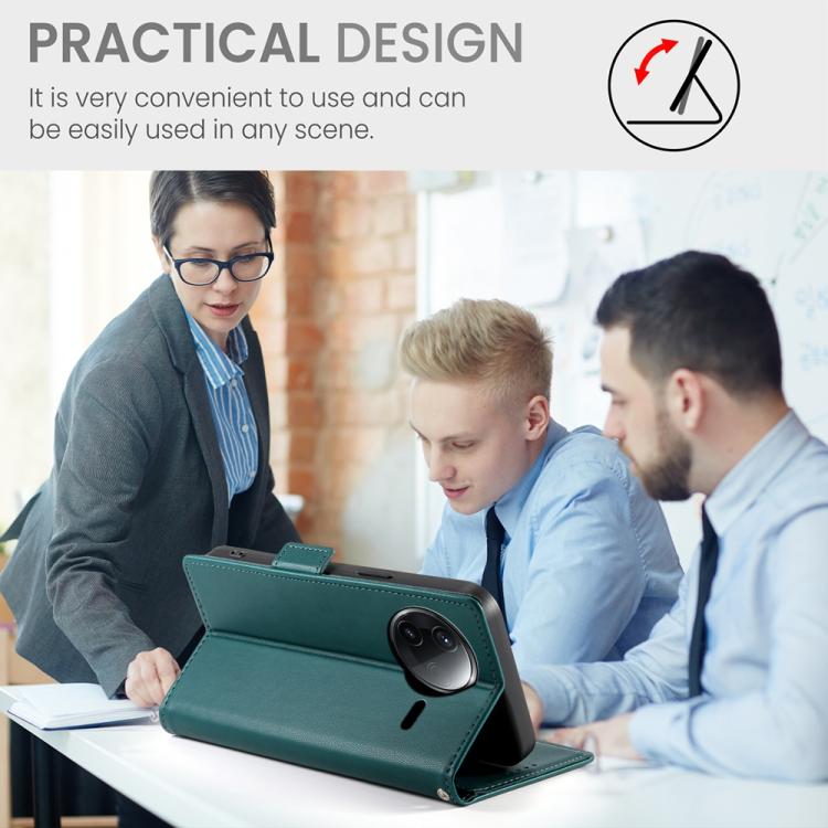 For Redmi K80 / K80 Pro Side Buckle Magnetic Frosted Leather Phone Case(Dark Green)