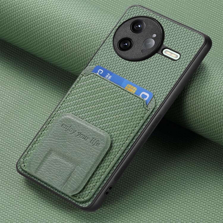For Redmi K80 / Poco F7 Pro Carbon Fiber Card Bag Fold Stand Phone Case(Green)