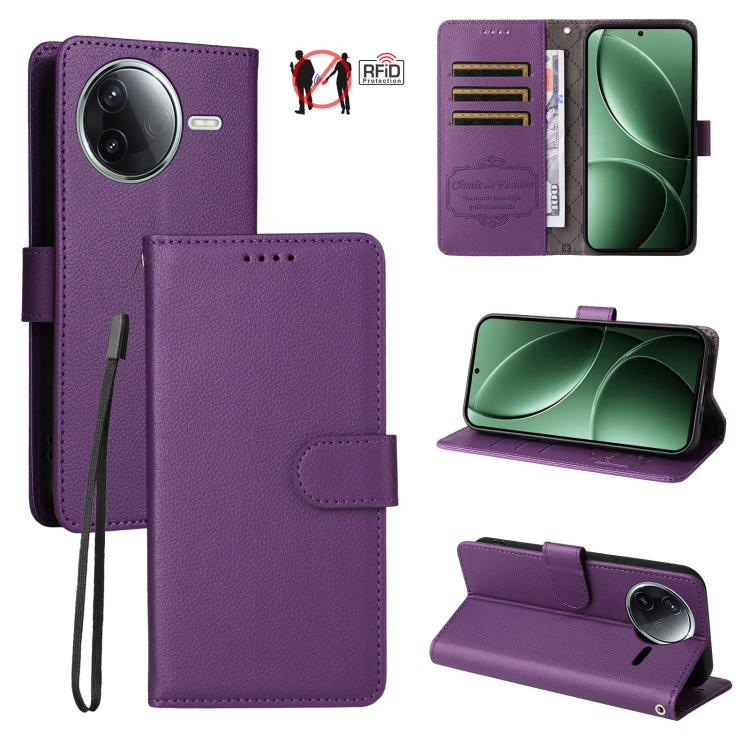 For Redmi K80 / Poco F7 Pro Litchi Texture RFID Blocking 3-Card Wallet Leather Phone Case(Purple)