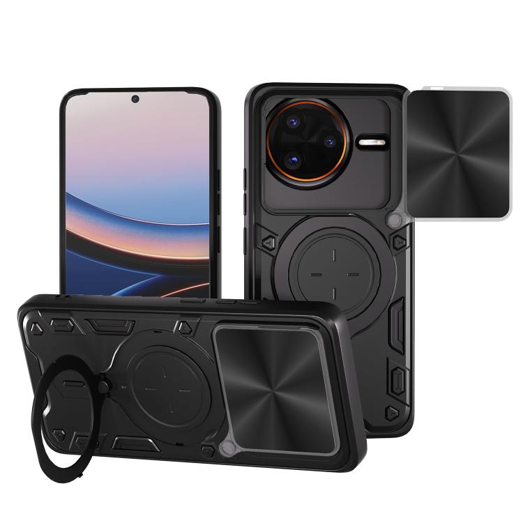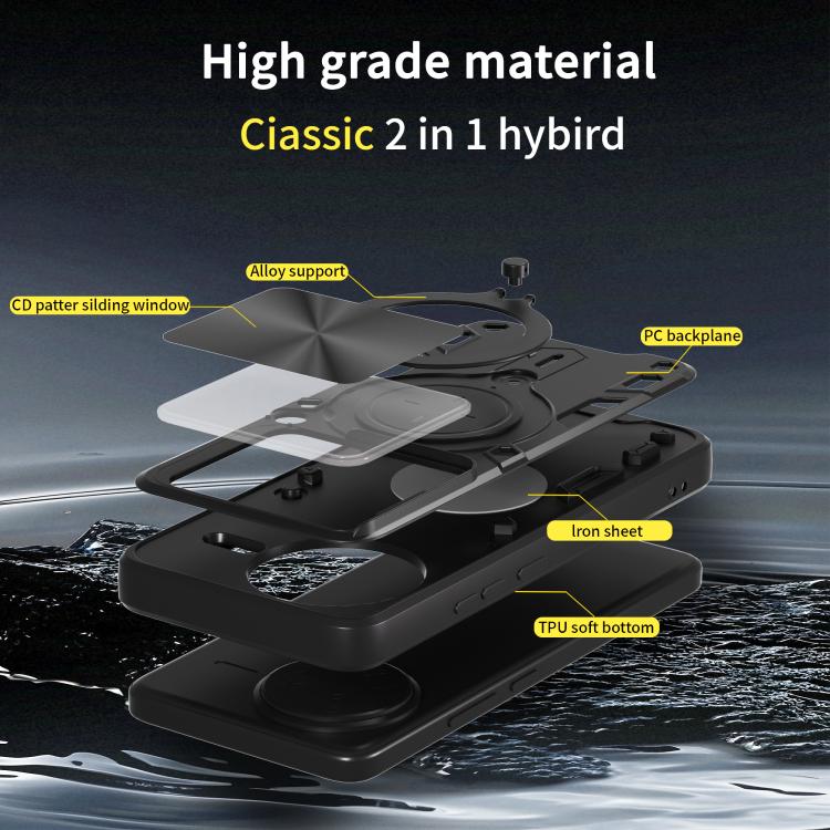For Redmi K80 Pro CD Texture Sliding Camshield Magnetic Holder Phone Case(Black)