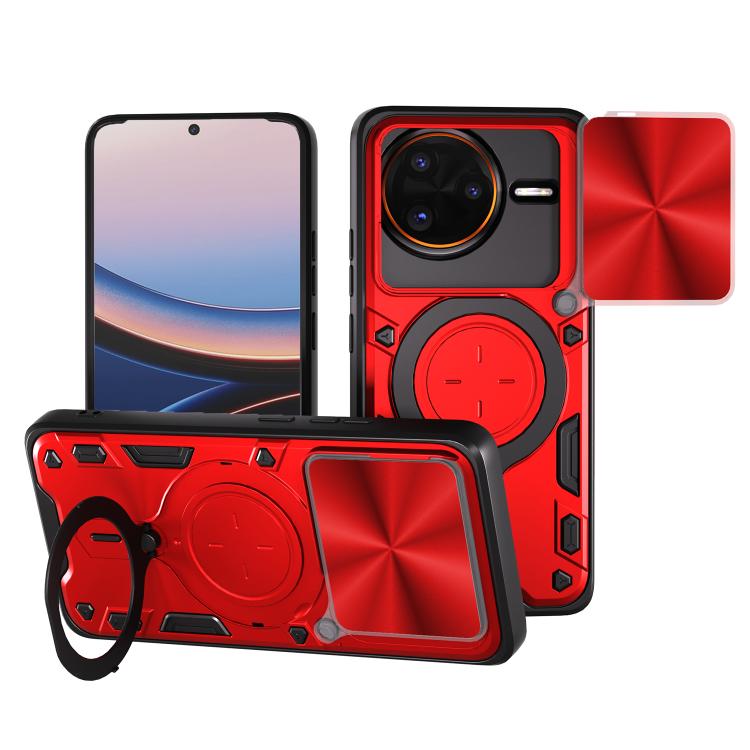 For Redmi K80 Pro CD Texture Sliding Camshield Magnetic Holder Phone Case(Red)