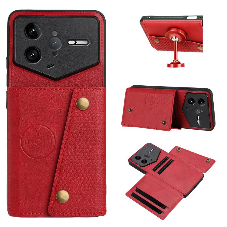 For Redmi K80 Pro Champion Edition Double Buckle Card Slots Magnetic Phone Case(Red)