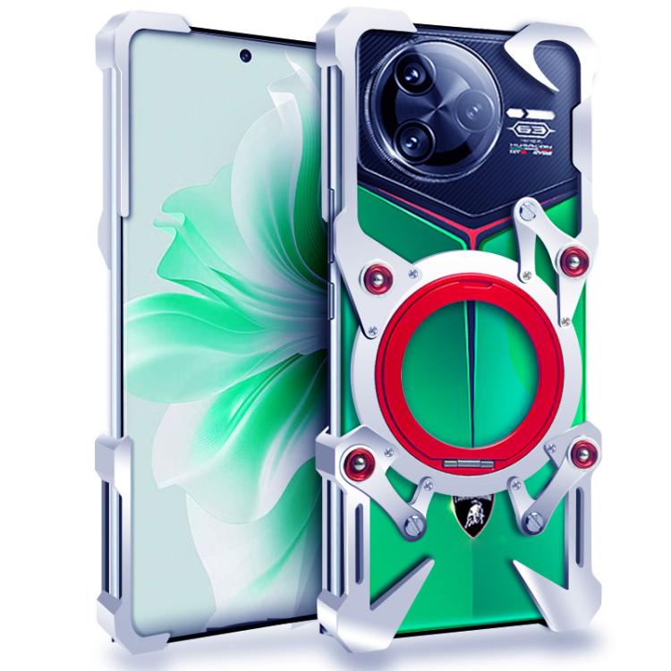 For Redmi K80 Pro Champion Rotating Bracket Hollow Metal Phone Case with Lanyard(Silver)