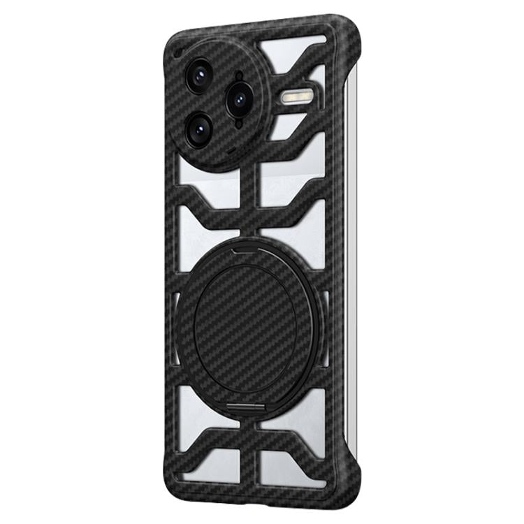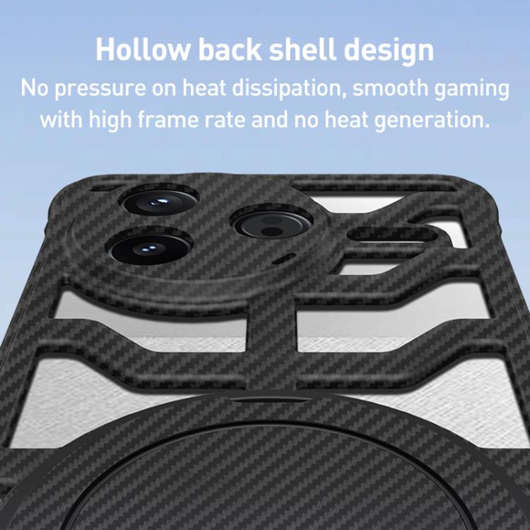 For Redmi K80 Pro Hollow Carbon Fiber Rotating Bracket MagSafe Phone Case(Black)