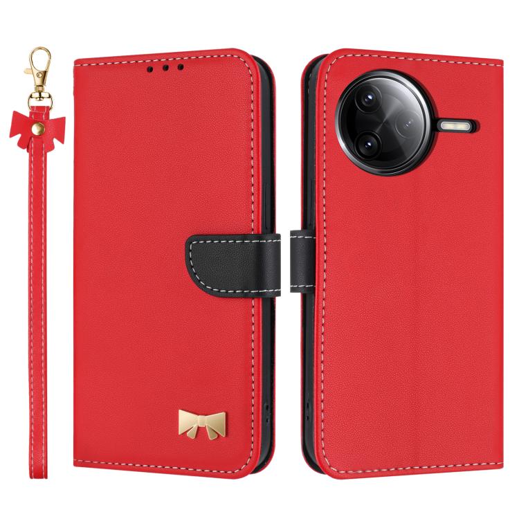 For Redmi K80 Pro / Poco F7 Pro Metal Bow Leather Phone Case with Hand Strap(Red)