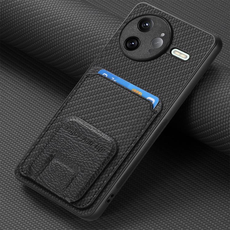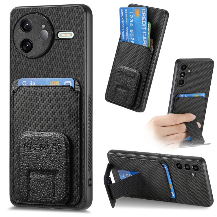 For Redmi K80 Pro / Poco F7 Ultra Carbon Fiber Card Bag Fold Stand Phone Case(Black)