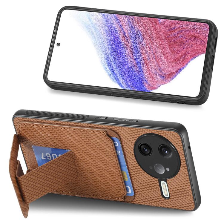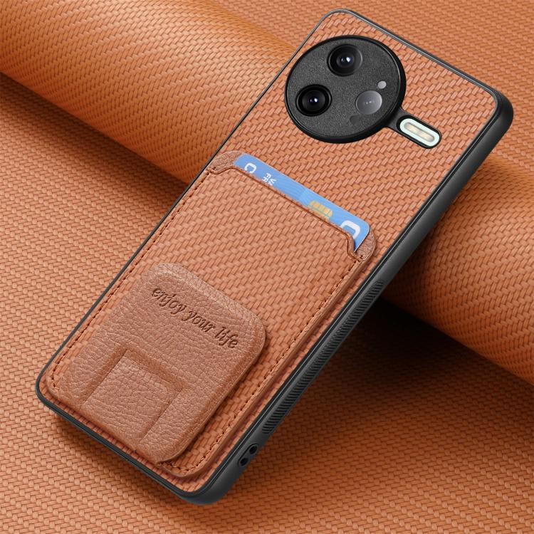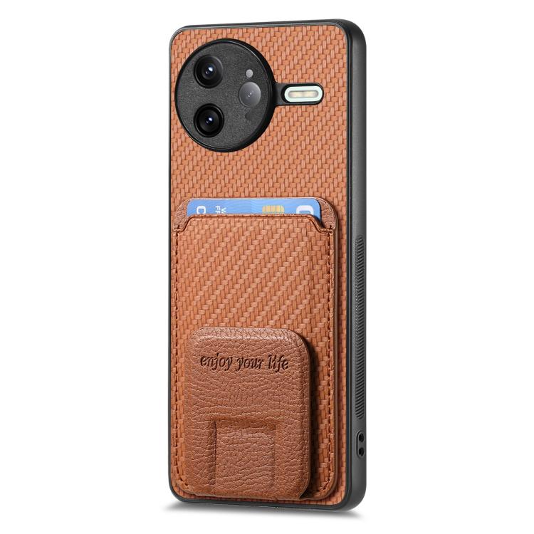 For Redmi K80 Pro / Poco F7 Ultra Carbon Fiber Card Bag Fold Stand Phone Case(Brown)