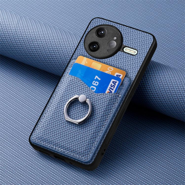 For Redmi K80 Pro / Poco F7 Ultra Carbon Fiber Card Wallet Ring Phone Case(Blue)