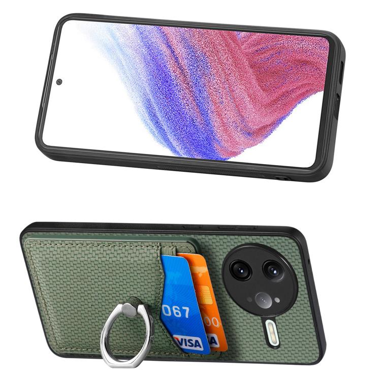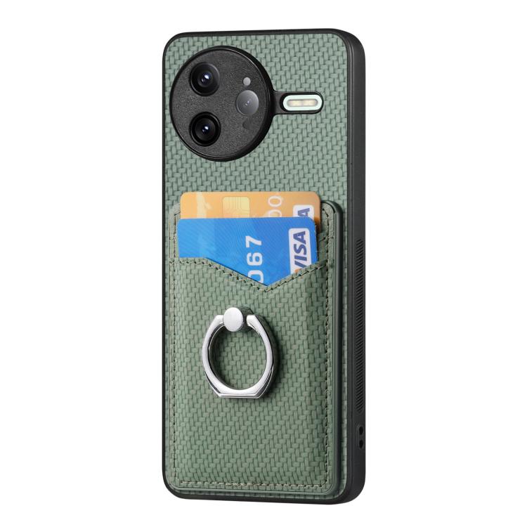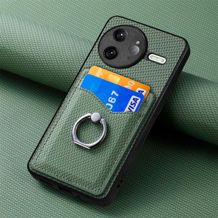 For Redmi K80 Pro / Poco F7 Ultra Carbon Fiber Card Wallet Ring Phone Case(Green)
