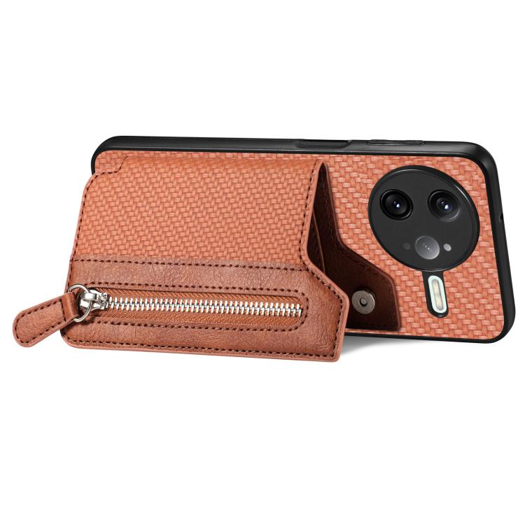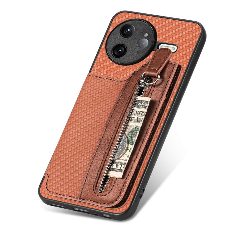For Redmi K80 Pro / Poco F7 Ultra Carbon Fiber Horizontal Flip Zipper Wallet Phone Case(Brown)