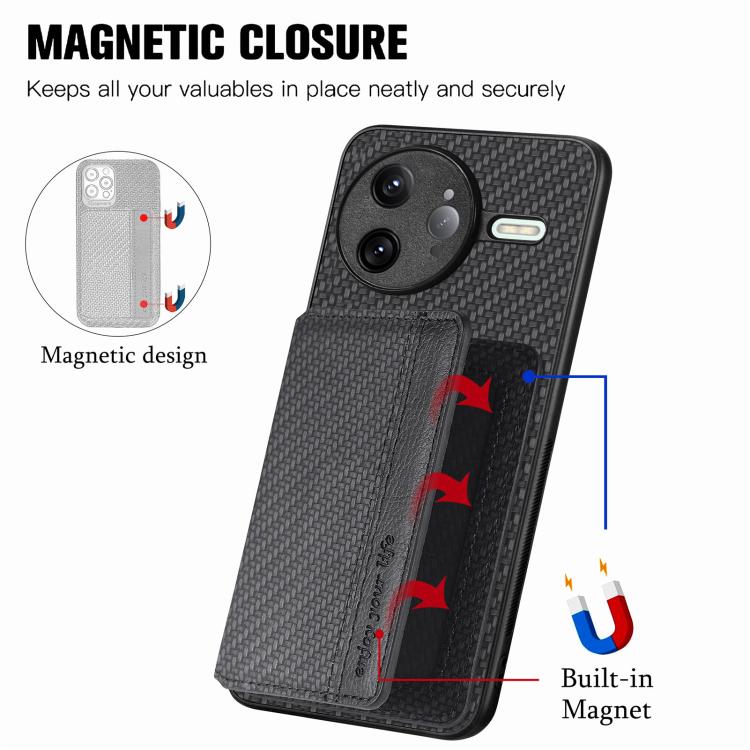 For Redmi K80 Pro / Poco F7 Ultra Carbon Fiber Magnetic Card Bag Phone Case(Black)
