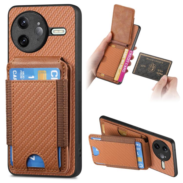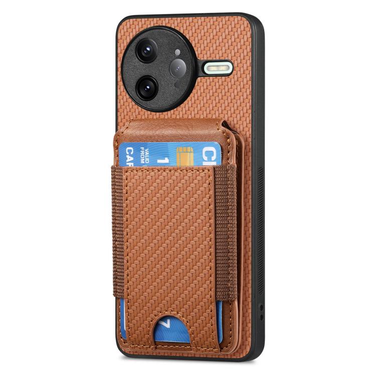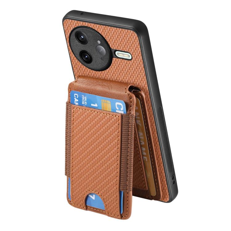 For Redmi K80 Pro / Poco F7 Ultra Carbon Fiber Vertical Flip Wallet Stand Phone Case(Brown)