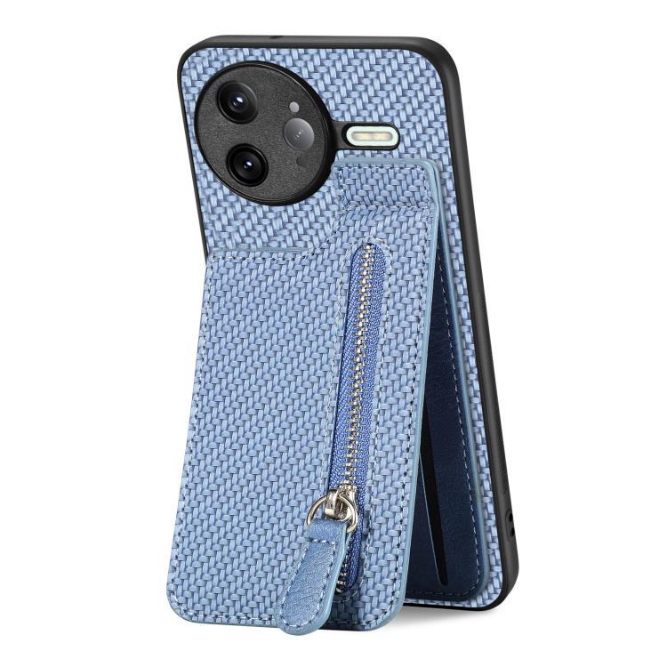 For Redmi K80 Pro / Poco F7 Ultra Carbon Fiber Vertical Flip Zipper Phone Case(Blue)