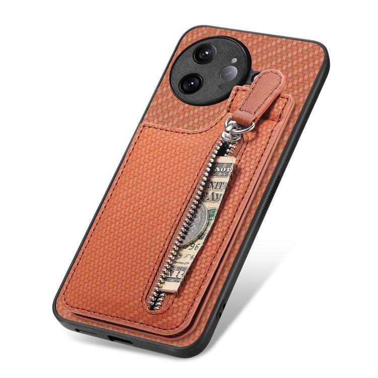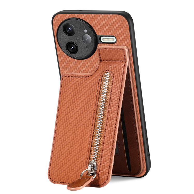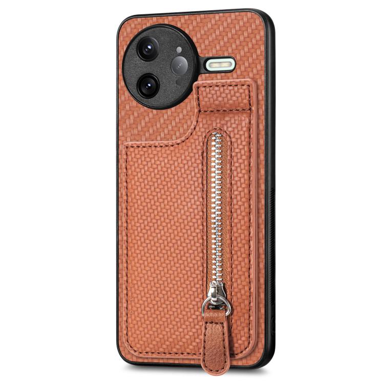 For Redmi K80 Pro / Poco F7 Ultra Carbon Fiber Vertical Flip Zipper Phone Case(Brown)