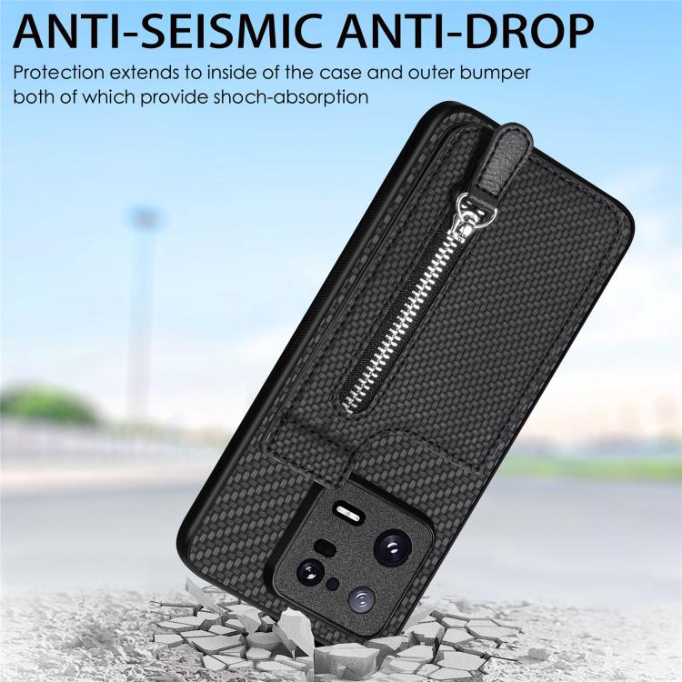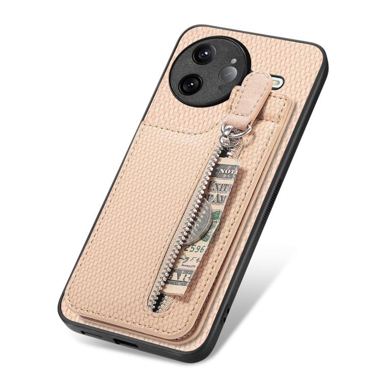 For Redmi K80 Pro / Poco F7 Ultra Carbon Fiber Vertical Flip Zipper Phone Case(Khaki)