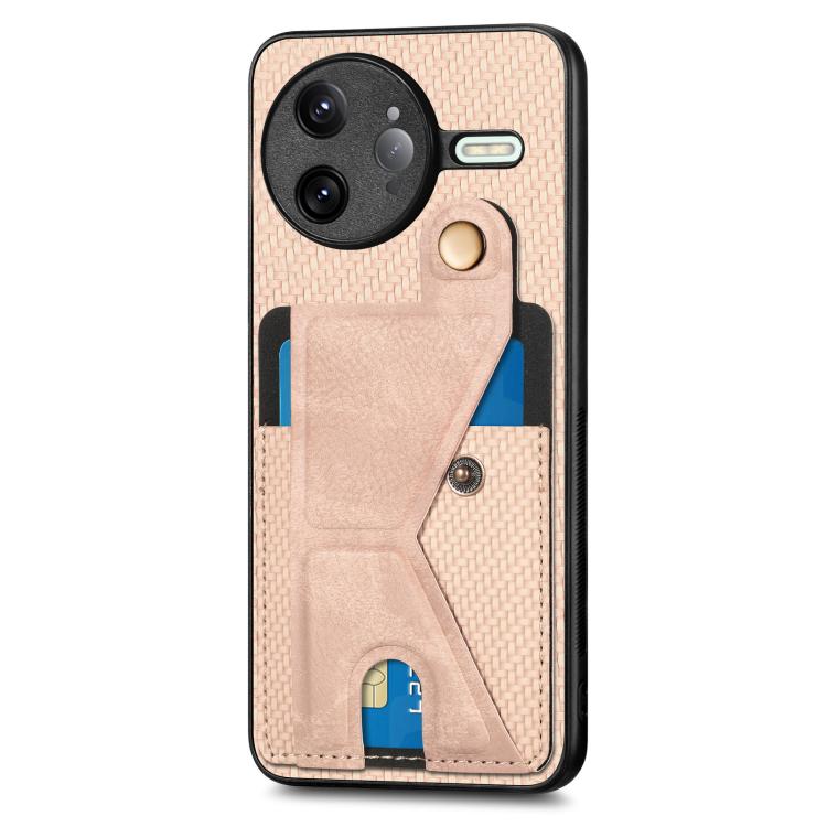 For Redmi K80 Pro / Poco F7 Ultra Carbon Fiber Wallet Flip Card K-shaped Holder Phone Case(Khaki)