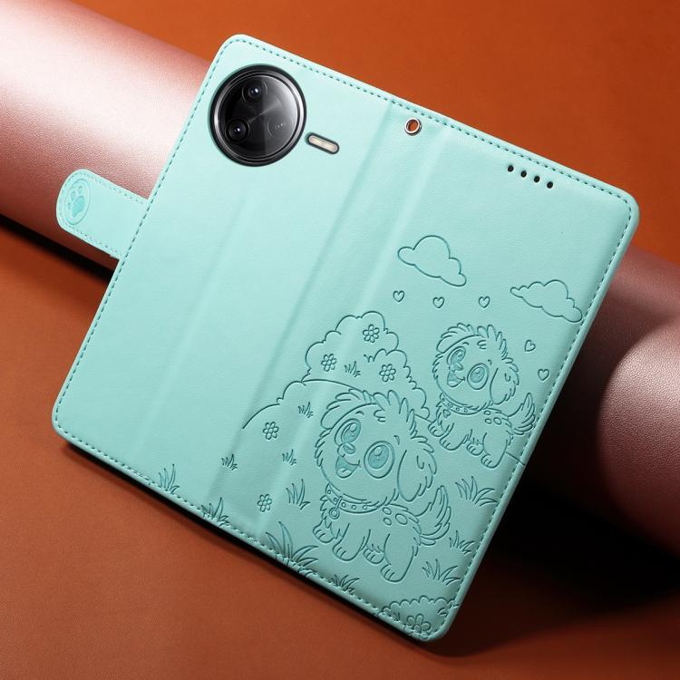 For Redmi K80 Pro / Poco F7 Ultra Embossed Heart Dog RFID Blocking Wallet Leather Phone Case(Green)